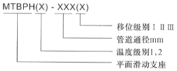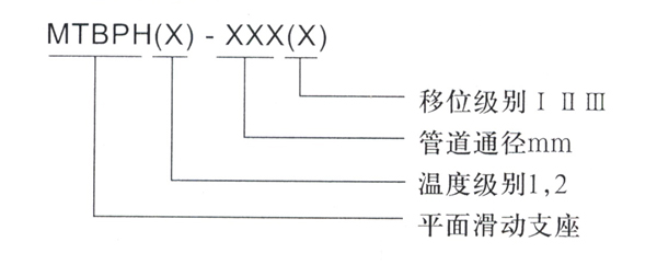 3、選型說明: 若要選溫度低于400℃的平面滑動支座,公稱通徑為1000mm,要求位移為200mm,,則型號為:MTBPH1-1000 II 若要選溫度高于400℃而低于650℃的平面滑動支座,公稱通徑為1000mm,要求位移為300mm,則型號為:MTBPH2-1000 III